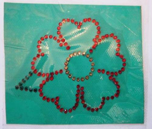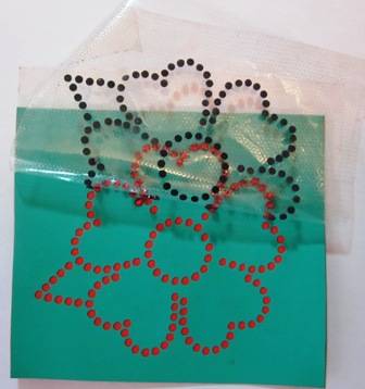 TEMPLATE MADE FROM VINYL STUCK ONTO CARDBOARD WITH HOLES PUNCHED IN