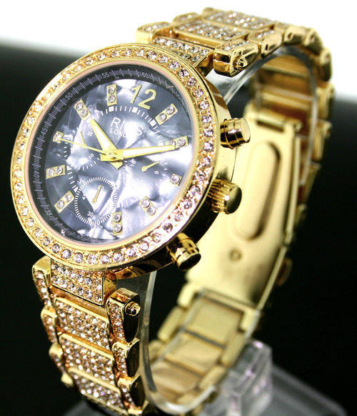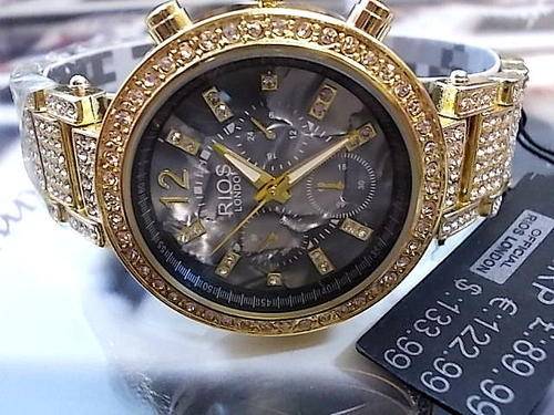 -- RIOS LONDON PREMIUM CZECH DIAMANTE LADIES ROSE GOLD WATCH-