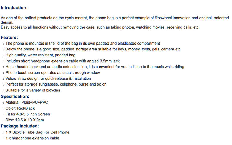 *** ROSWHEEL CYCLING WATERPROOF CELLPHONE TUBE BAG CASEHOT BUY***