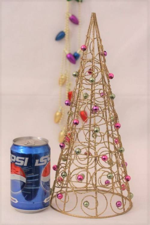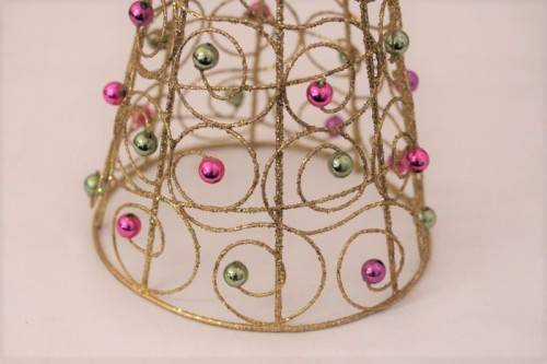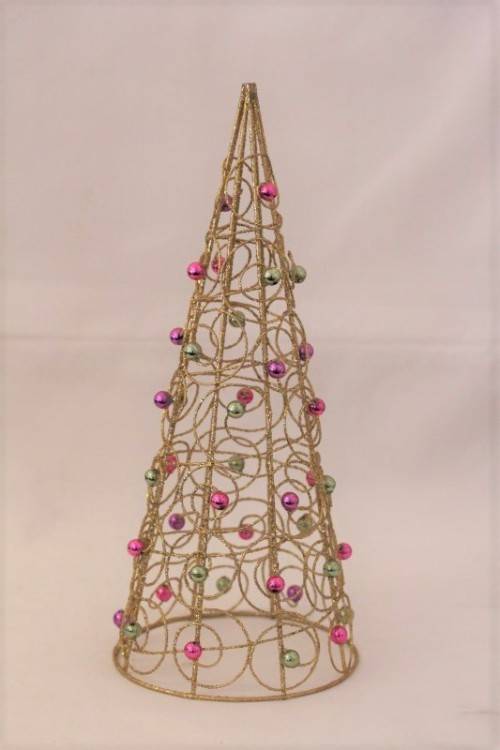 ***Awesome gold-glitter metal Xmas tree with bead decorations***