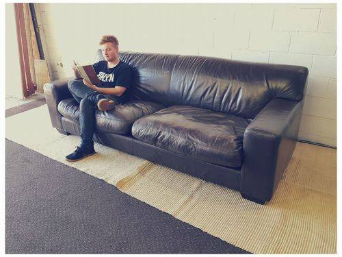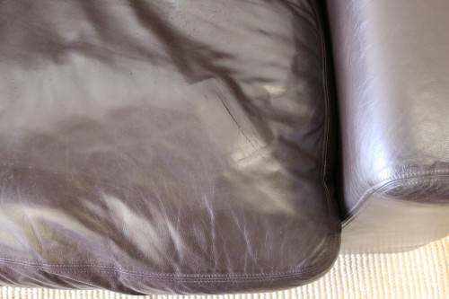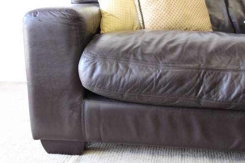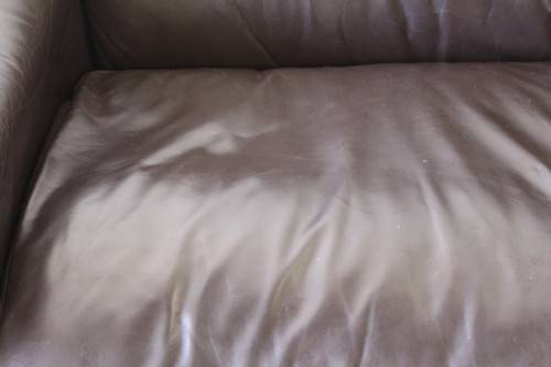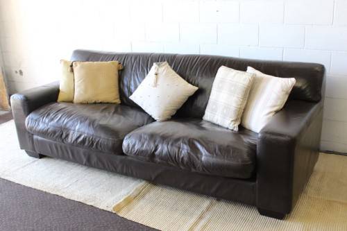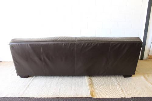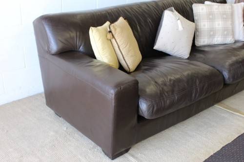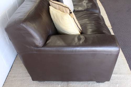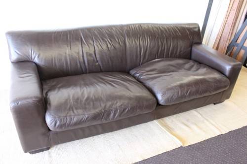 This superb X-LARGE and extremely comfortable brown genuine full-grain leather couch looks stunning and has loads of character. This is a genuine leather and not bonded leather couch and is an up-market quality couch. The couch measures a well above average 245cm long x 103cm wide x 88cm high. It is the ideal couch for a large family room or entertainment room or even as a couch in an office reception area. The couch is very well made and is a quality expensive leather couch. Please note the cushions are not included but are listed separately. There is some damage on the seat that was professionally repaired (see pics). Please view the pics carefully to fully appreciate this awesome large genuine leather couch and to confirm the condition.