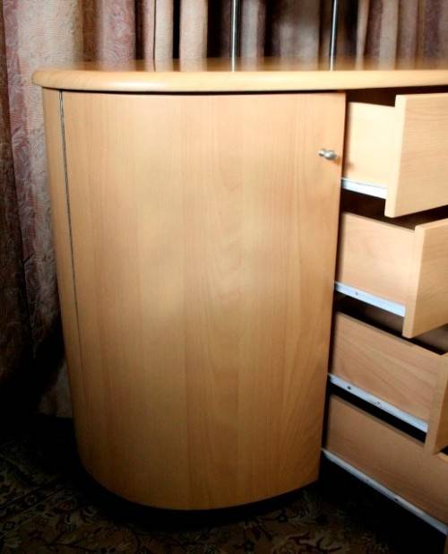 This stylish modern dressing table measures 56cm wide x 155cm long x 176cm high including the mirror. The cabinet on its own measures 81cm high. The dresser has four large drawers and two rounded corner cupboards. The mirror is removable and this stunning cabinet could be used as a side server too. This is a lovely modern piece of furniture and is perfect for a teenagers bedroom, holiday homes or spare rooms!!! There is absolutely minimal age and usage related wear on this dressing table. Please view the pics carefully to fully appreciate this stunning dressing table and to confirm the condition Please view the shipping options or request courier costs prior to purchasing any of our products.