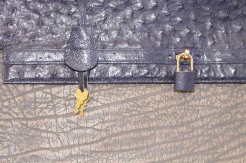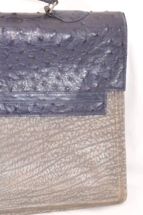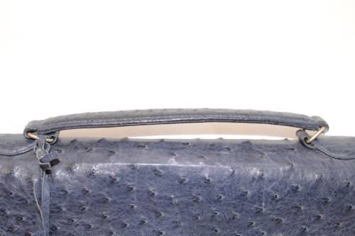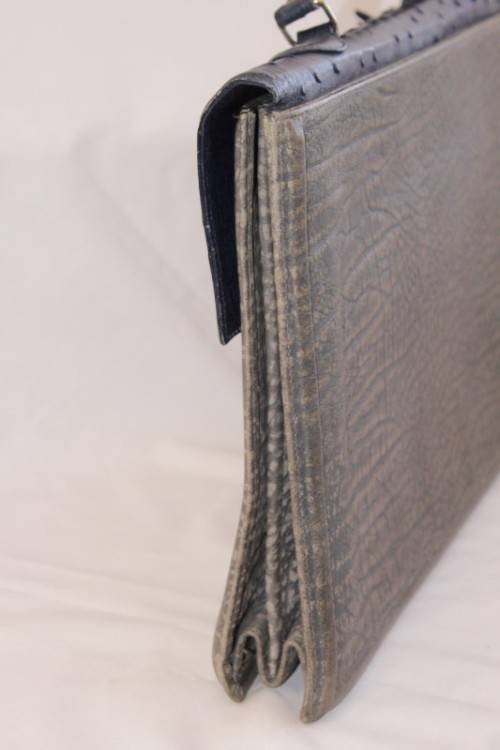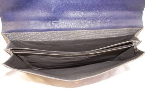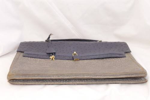 This stylish and quality made two-tone ladies slim briefcase has a combination of midnight blue genuine ostrich skin leather and grey buffalo hide and is in great condition with minimal/ normal usage related wear and tear. The briefcase measures 42cm long x 29cm high and has the two keys with the lock still attached to the briefcase. The briefcase has an array of zipper compartments and a clasp on the front of the handbag. There are no tears in the leather and the briefcase has absolute minor scuffs etc. Please view the pics carefully to fully appreciate this amazing quality genuine ostrich leather and buffalo hide ladies briefcase and to confirm the condition.