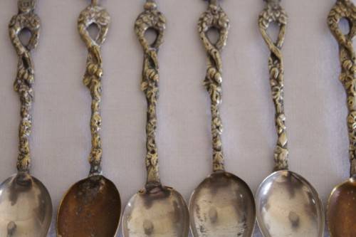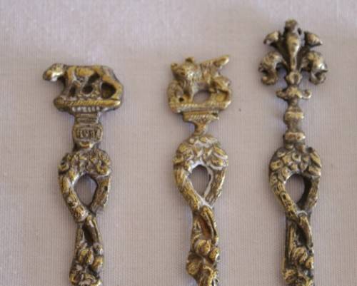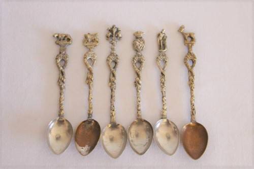 This wonderful set of 6x rare antique Italian made "Alpak" silver plated (on copper) Roman themed figural teaspoons were made by Montagnani and look to date to between 1890 and 1930. Each of the spoons has an ornate Roman Legion military Standard figural emblem on the end of it with ornate detailing down to the bowl. There were apparently 24 different figural emblems used. The spoons range in length between 11.9cm and 13.2cm long. The spoons have some age related wear and tear and tarnish, but it would be money well spent having them re-plated. Please view the pics carefully to fully appreciate this set of six antique Italian teaspoons and to confirm the condition.