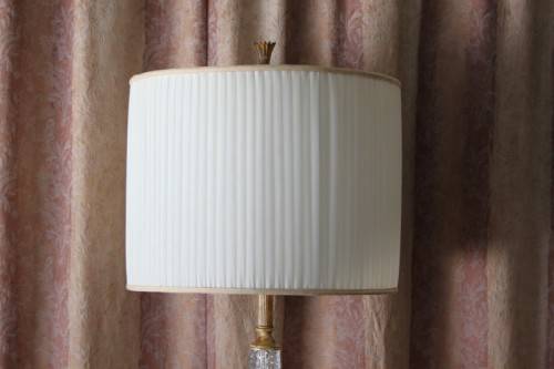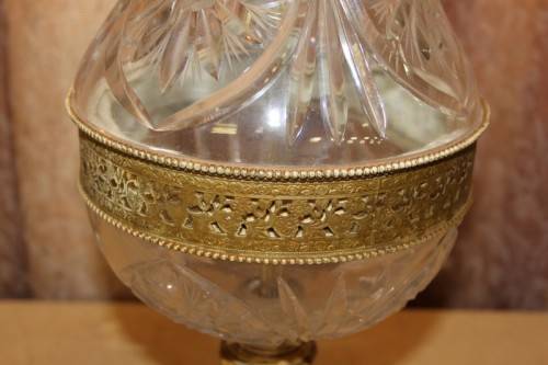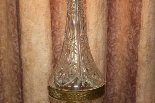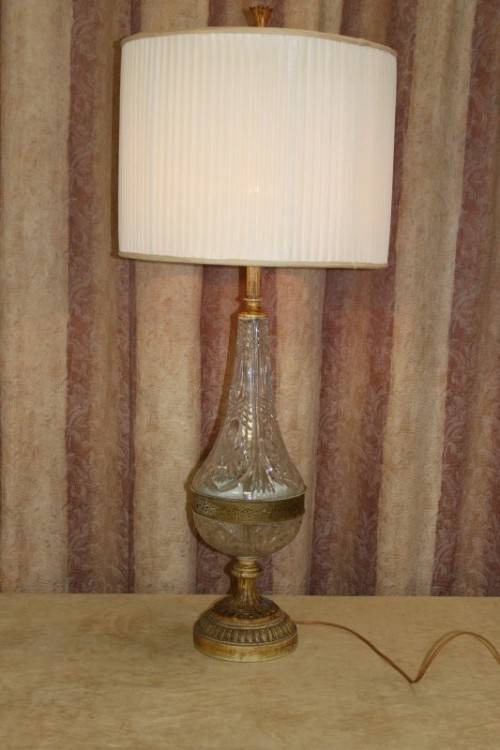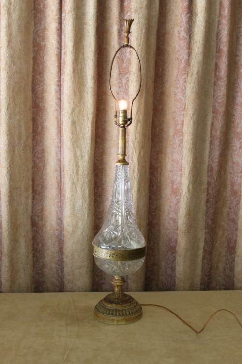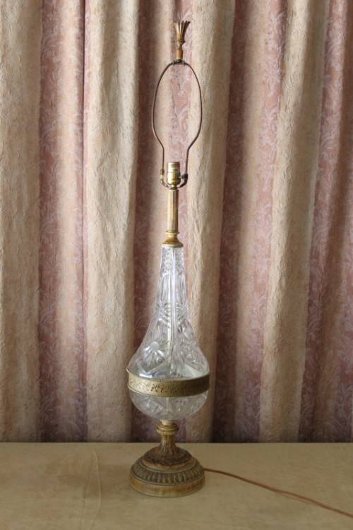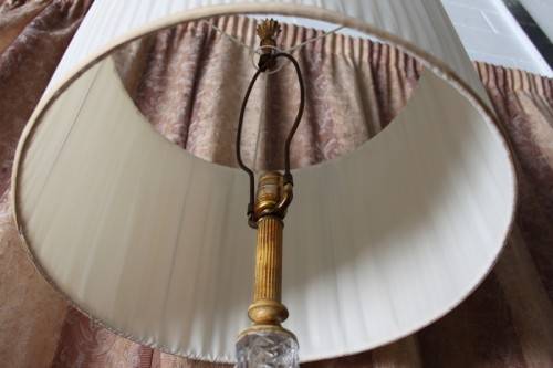 This spectacular West German made hand cut lead crystal table lamp with stunning filigree detailing is in gorgeous condition for its age and has been exceptionally well looked after. This superbly made lamp has the original finial on the top of the lampshade and still has the original ceramic plug on it. The lamp has an on/off switch just under the globe section. This incredible lamp stands a whopping 115cm high x 48cm across the shade. The shade is also in great condition. The lamp has the remnants of the original manufacturers label on the side. There are no chips or cracks in the crystal and the metal work has minor chips which a little TLC could be sorted out. You need to see this lamp to completely appreciate its beauty!!! This would make a statement piece, no matter where you put it. This is quality expensive German crystal at its best. Please view the pics carefully to fully appreciate this truly spectacular German cut-crystal table lamp and to confirm the condition.