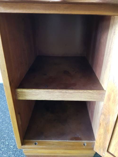 This stunning and are vintage Art Deco Kiaat night pedestal cabinet measures 49cm long x 40cm wide x 68cmm high. The cabinet has a single door cupboard with a single shelf and is in awesome condition for its age (c1940's) with fair vintage wear and tear. The cabinet is sturdy and would also make a wonderful bathroom cabinet or lamp stand in a living room. Please view the pics carefully to fully appreciate this stunning cabinet and to confirm the condition.