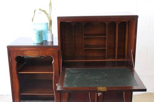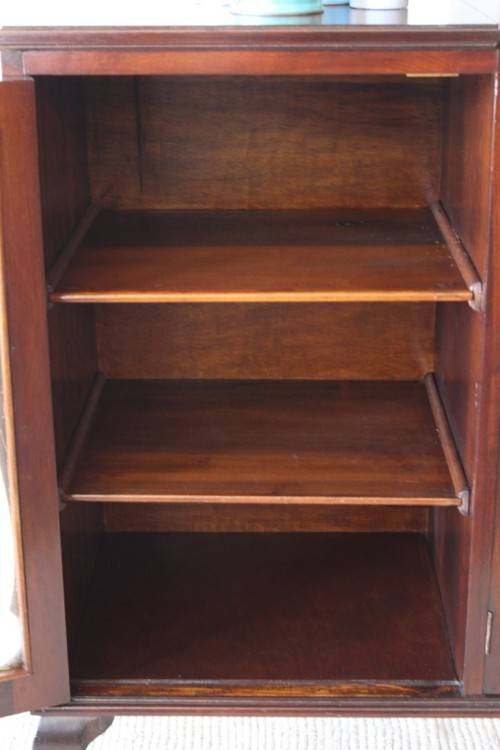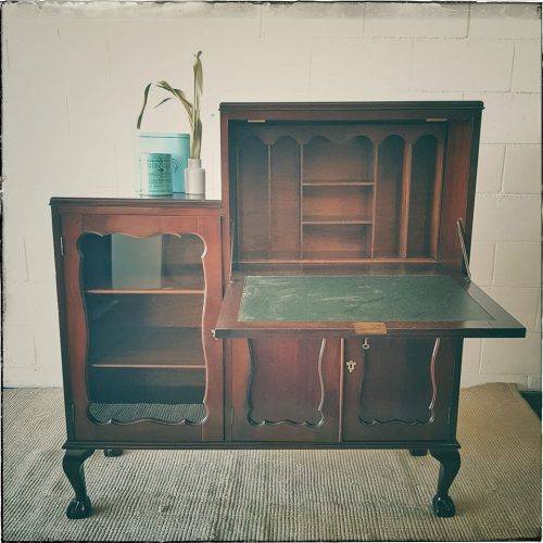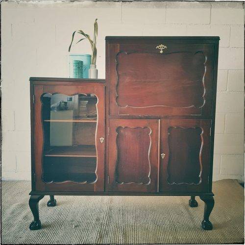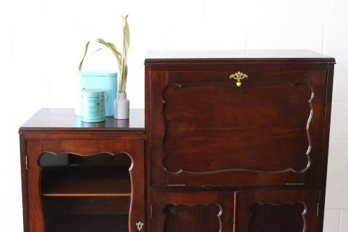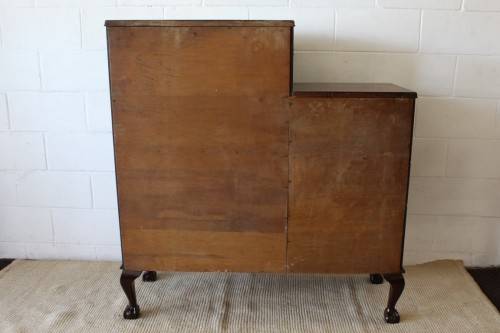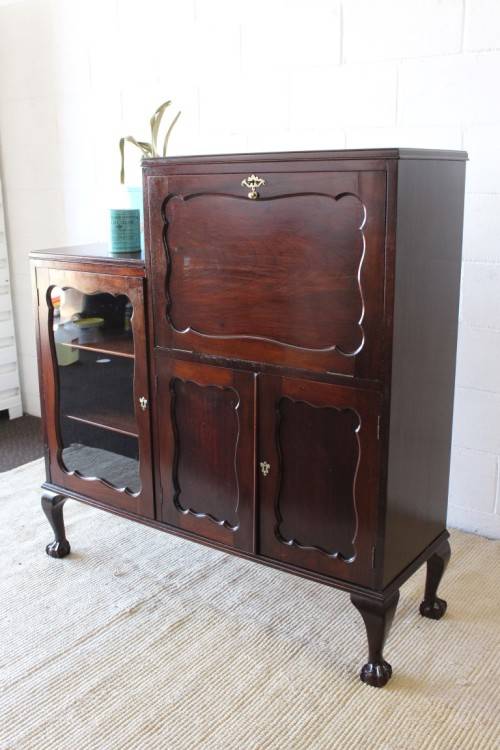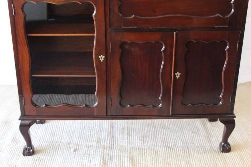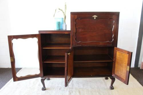 This beautiful vintage ball and claw display/ drinks cabinet measures 114cm long x 38cm wide x 123cm high. The cabinet is in stunning condition with minor/ normal age and usage related wear and tear and looks great! The cabinet features a fall front door and compartments inside for wine etc. On the left of the cabinet there is a glass door with glass shelves inside perfect for wine glasses - this really is the ideal compact drinks unit! The period style handles are also very striking. Please view the pics carefully to fully appreciate this stunning drinks cabinet and to confirm the condition.