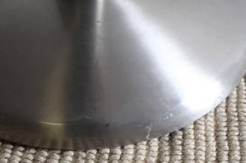 This awesome tall round wooden top cafe/ bar standing table with a heavy chromed base is the ideal table to have in a pub or bar. The table measures 60cm across x 109cm high. The table is in good condition with normal usage related wear and tear and scuffs (see pics) on both the table top and on the base. Please view the pics carefully to fully appreciate this wonderful tall cafe table and to confirm the condition.