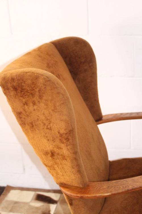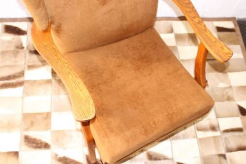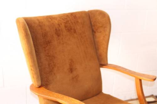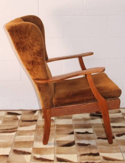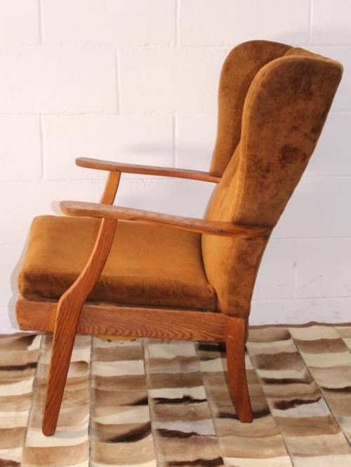 This wonderful vintage mid-century solid oak retro-brown period-upholstered wing back armchair is in lovely condition for its age and measures 68cm long x 70cm wide x 88cm high. The armchair has a removable cushion and the chair is in good all round condition with normal age and usage related wear and tear associated with a 60-odd year old armchair. This style of chair is often referred to as a smoking chair or reading chair or even a library chair. The armchair could be re-upholstered to suit your decor, but the retro brown fabric keeps it so 1950's. Please view the pics carefully to fully appreciate this are antique Edwardian bentwood armchair chair and to confirm the condition. Please view the shipping options or request courier costs prior to purchasing any of our products.