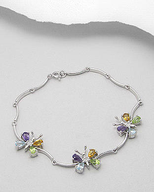 "SALE!"100% GENUINE AMETHYST,PERIDOT,BLUE TOPAZ & CITRINE BUTTERFLY BRACELET - 925 STERLING SILVER