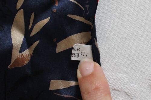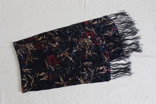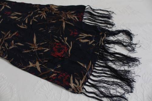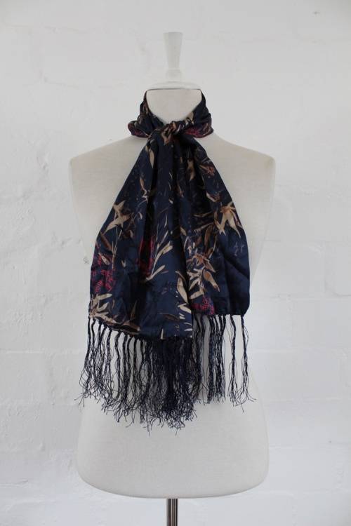 *SALE - 50% OFF!* VINTAGE 100% SILK CHINESE NAVY BLUE BAMBOO PRINT FRINGED SCARF