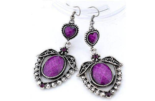 *****SALE***** EARRINGS - TIBETAN SILVER - PURPLE HEART CRYSTAL BEADED DANGLE EARRINGS