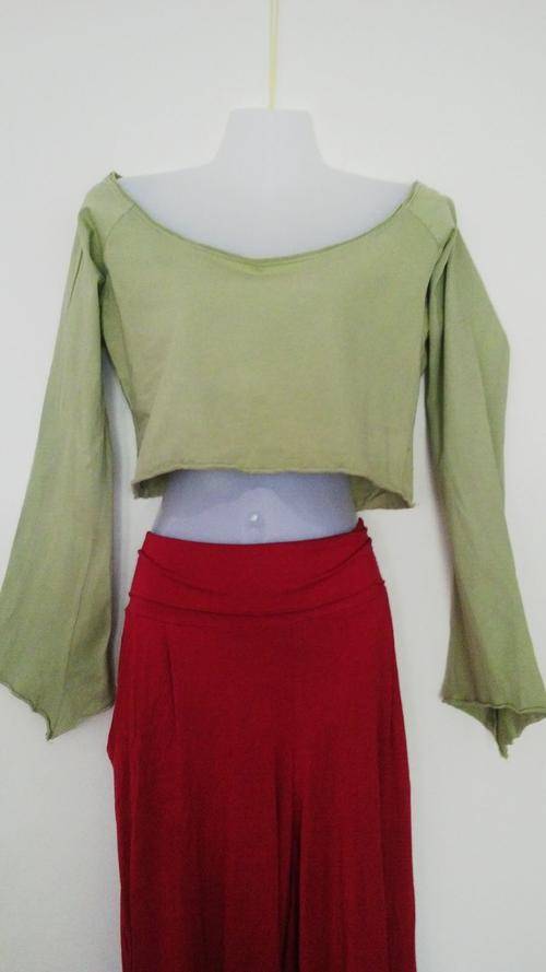Long sleeved wide neck crop top by Freedom 2x Sage Green & 2 x khaki