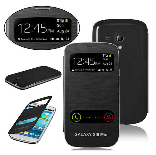 **Samsung Galaxy S3 MINI S VIEW Covers**Ultra Slim Flip Case***Double Window***Black ONLY**2 Avail**