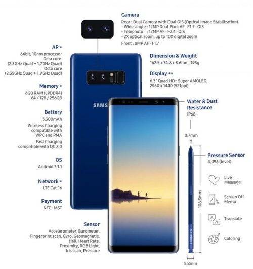 **SAMSUNG NOTE 8 IN BRAND NEW CONDITION 6GIG RAM, 64GB STORAGE 12MP CAMERA, FINGERPRINT SCANNER**