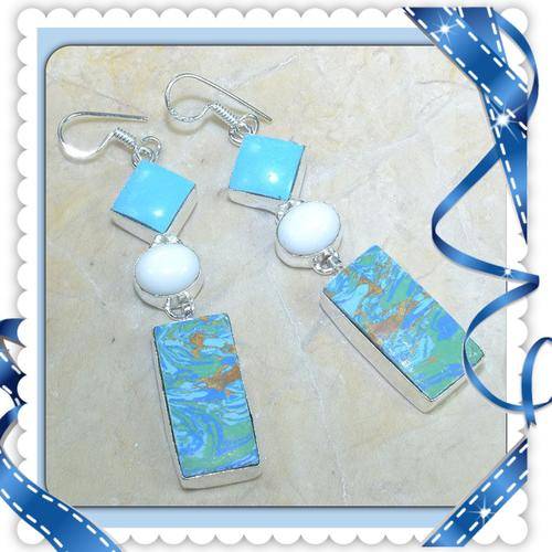 COPPER TURQUOISE, CATS EYE EARRINGS