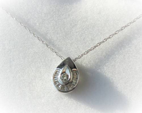 **SHEER CLASS [R21074]** DIAMOND PENDANT [0.250ct] ROUND / BAGUETTE CUT + OPTIONAL CHAIN - BUY SAFE