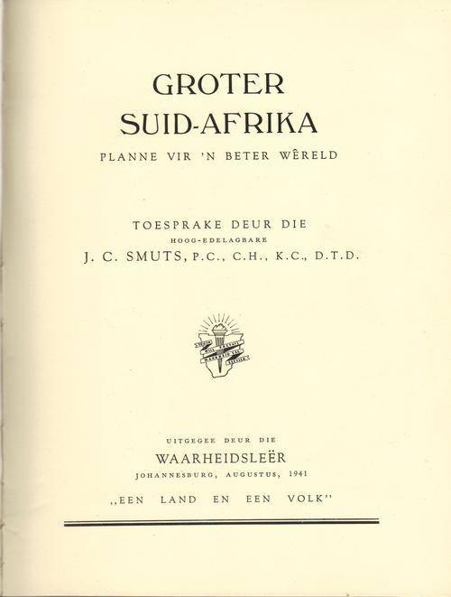 Uitgegee deur die Waarheidsleer, Johannesburg, August 1941