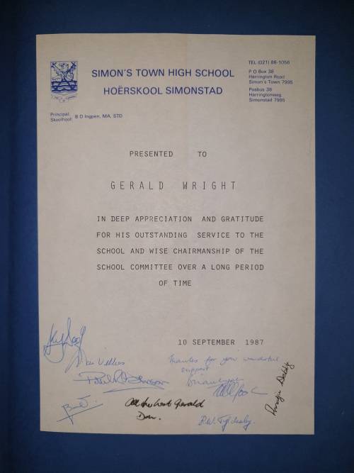 ***ALSO A PRESENTATION COPY TO GERALD WRIGHT FROM SIMON'S TOWN HIGH SCHOOL***