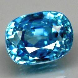 The fire in Zircon, called dispersion, is caused by light entering the gemstone and separating into a prism of rainbow colours. Possessing dispersion approaching that of Diamond, the brilliance of Zircon is second to none. The Zircon cut, a variation of the Round Brilliant cut that adds eight extra facets to the pavilion, was designed to take advantage of these properties. There is no blue in the gem world that comes close to the vivid ocean blue of the Cambodian Zircon.