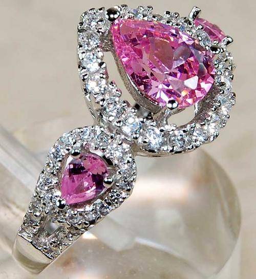 ***SOPHISTICATED***2CT Pink Sapphire & White Topaz 925 Solid Sterling Silver Ring Sz 9