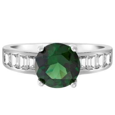 **SPARKLING CLASSIC ROUND CUT GREEN EMERALD RING SET IN 18CT WHITE GOLD**