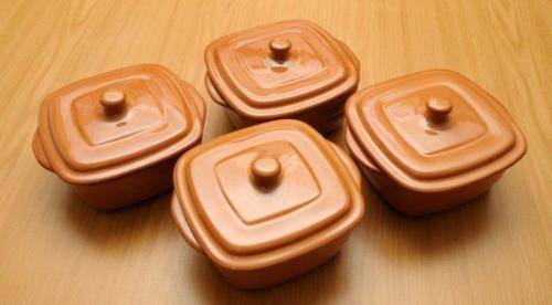 4 X BEAUTIFUL TERRA-COTTA BAKING/SERVING DISHES WITH LIDS