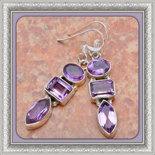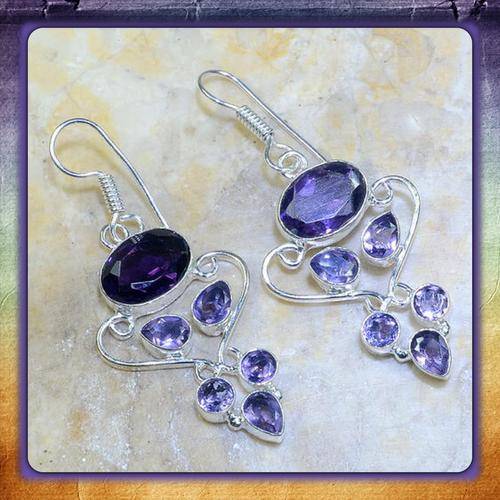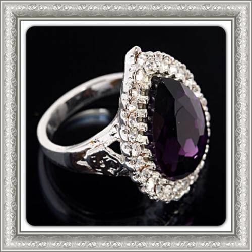 ***SPECTACULAR*** NATURAL PURPLE AMETHYST, WHITE TOPAZ GEMSTONE 925 SILVER RING SIZE 8