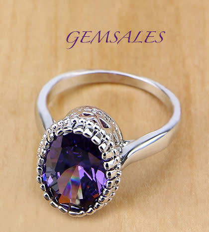 *SPECTACULAR*OVAL CUT AMETHYST RING -AVAILABLE SIZES 5 1/2 - 6 1/2 - 7 1/2*