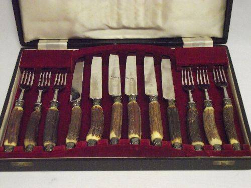 . STAG HORN HANDLE CUTLERY SET IN CANTEEN. SHEFFIELD. MINT CONDITION