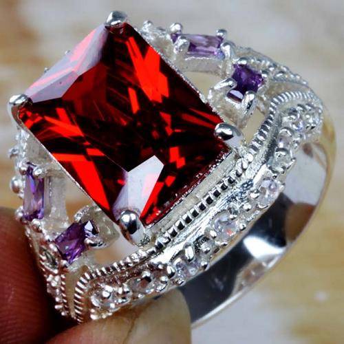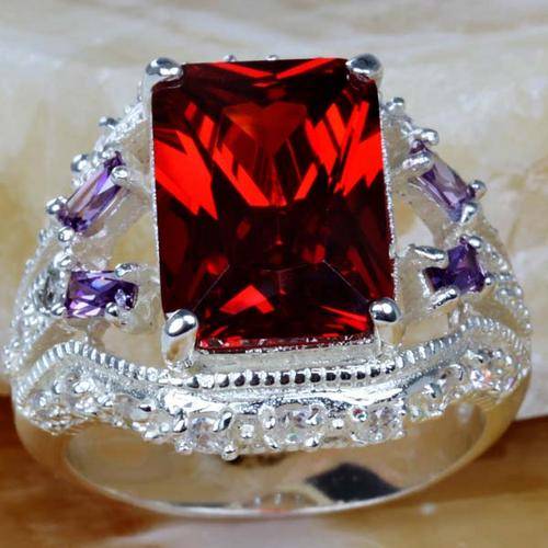 "STOCK CLEARANCE - NEVER TO BE REPEATED!! EMERALD CUT GARNET, AMETHYST & WHITE QUARTZ RING