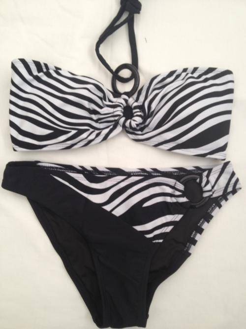 Zebra triangle bikini set Featuring Sexy top with hot ring details and halter tie. Back "8 buckle closure. Panty with Ring side.