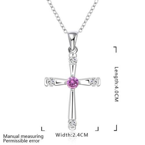 Gorgeous 925 Silver Plated Purple And Clear Austrian Crystal Cross pendant Necklace