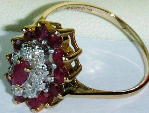 **STUNNING** 9KT SOLID GOLD RUBY & DIAMOND CLUSTER RING SIZE L