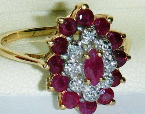 round and marquise rubies and smaller round cut diamonds