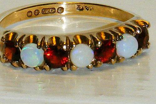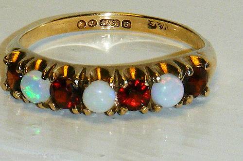 **STUNNING** 9KT SOLID YELLOW GOLD GARNET & FIERY OPAL RING SIZE P