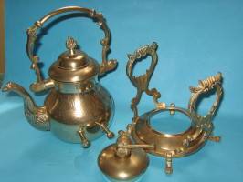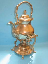 An ABSOLUTE #Stunning # Brass Teapot on Stand. with it's little burner underneath the pot. About 34cm in height with handle and 19cm in length.