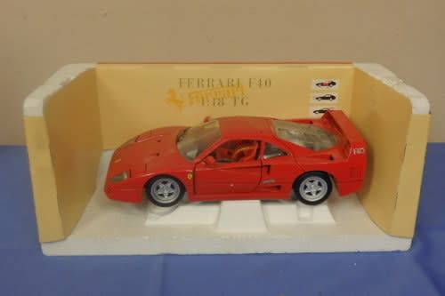 THIS FANTASTIC AND RARE TONKA POLISTIL 1:18SCALE RED FERRARI F40 DIE CAST MODEL CAR IS IN NEARPRISTINE CONDITION AND IS IN ITS ORIGINAL BOX. THE CAR IS STILL MOUNTED ON ITS ORIGINALPLATFORM AND HAS NO SCUFFS ETC ON IT. THE BOX HAS A LITTLE WEAR AND TEAR(PLEASE SEE THE PICS). THESE 1:18 SCALE DIE CAST MODEL ARE ARE RARE AND VERYCOLLECTIBLE.