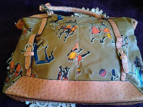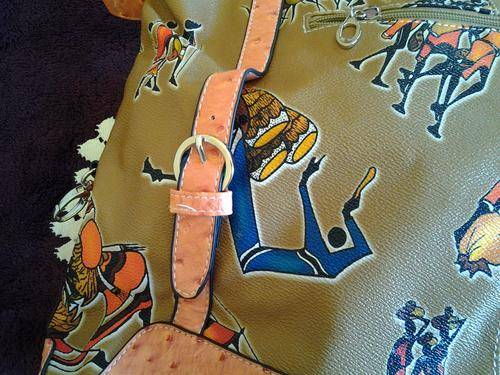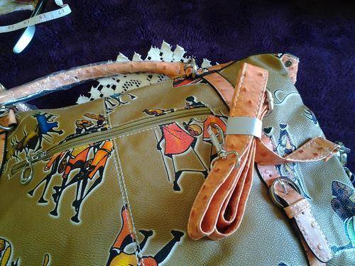 FASHION HANDBAG WITH CONTRAST DETAIL - (FAUX OSTRICH LEATHER)
