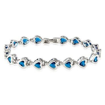 STUNNING BLUE SAPPHIRE HEART CUT TENNIS BRACELET IN 18CT WHITE ROLLED GOLD