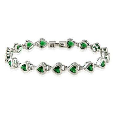 STUNNING GREEN EMERALD HEART CUT TENNIS BRACELET IN 18CT WHITE ROLLED GOLD