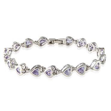 STUNNING TANZANITE HEART CUT TENNIS BRACELET IN 18CT WHITE ROLLED GOLD