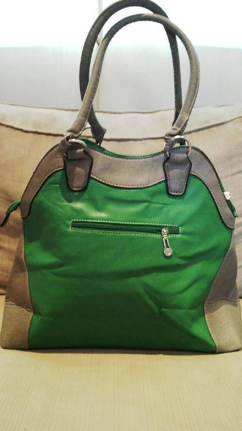 Stunning Ladies Green/Grey PU Leather Handbag, this bag is huge and can also be used as a travel bag, it has 2 divided sections on the inside of the bag allowing plenty of storage, has zippered compartments on the inside of the bag and a cellphone compartment, comes with a coin wallet or this can be used for anything you like, Beautiful Piece!!!