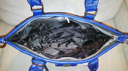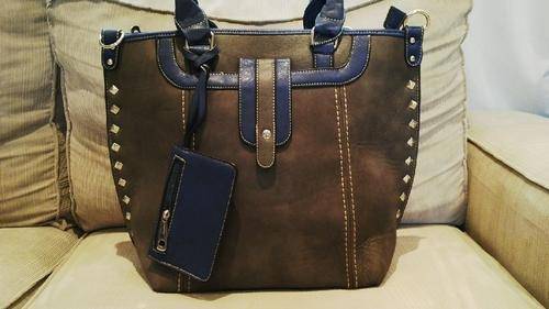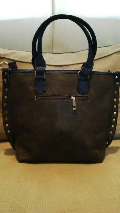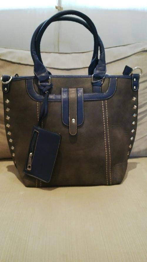 Stunning Ladies Grey/Blue PU Leather Handbag, has a compartment on the front and a funky studded trim on the corners, comes with a coin wallet or this can be used for anything you like, Beautiful Piece!!!