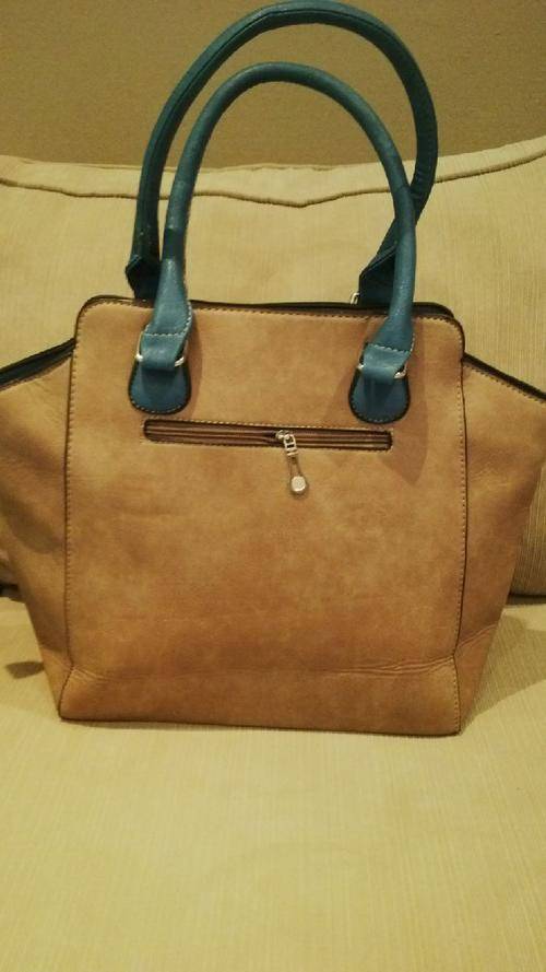 Stunning Ladies Beige/Blue PU Leather Handbag With Pretty Detail & Design...Beautiful Piece!...