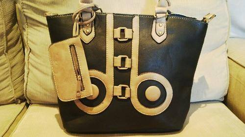 Stunning Ladies Black/Beige 3pc PU Leather Handbag Set With Pretty Detail & Design...Beautiful Piece!... Comes with the big bag, a smaller sling bag and a coin wallet, great set, don't miss out...