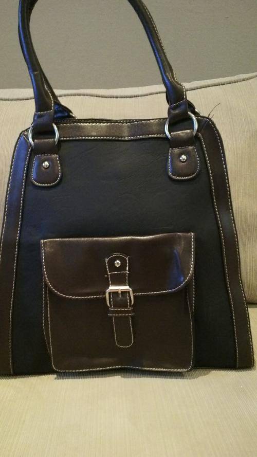 Stunning Ladies Small Black/Brown PU Leather Handbag With Pretty Detail & Design...Beautiful Piece!...