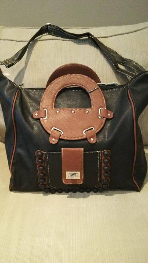 Stunning Ladies Black/Brown PU Leather Handbag With Pretty Detail & Design...Beautiful Piece!... This piece can be worn 2 ways, you can carry it on your hand or you can use the detachable straps for a sling style look...
