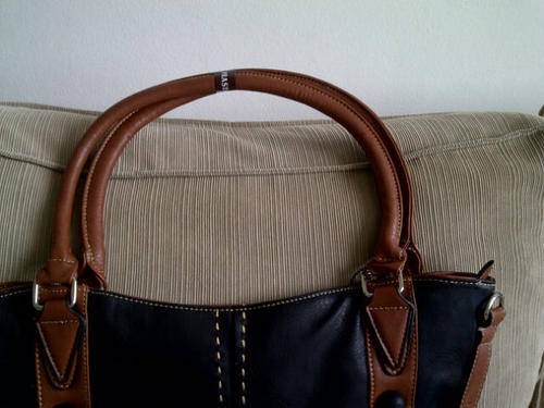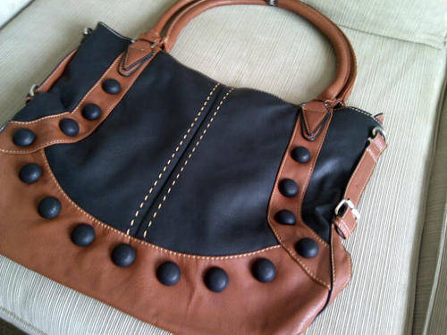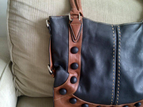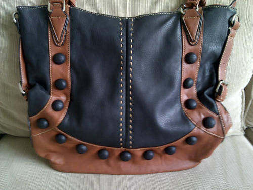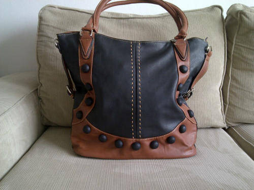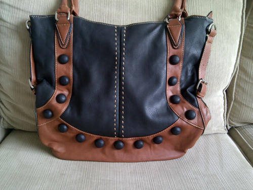 Stunning Ladies Black/Brown/Tan PU Leather Handbag With Pretty Detail & Design...Beautiful Piece!...