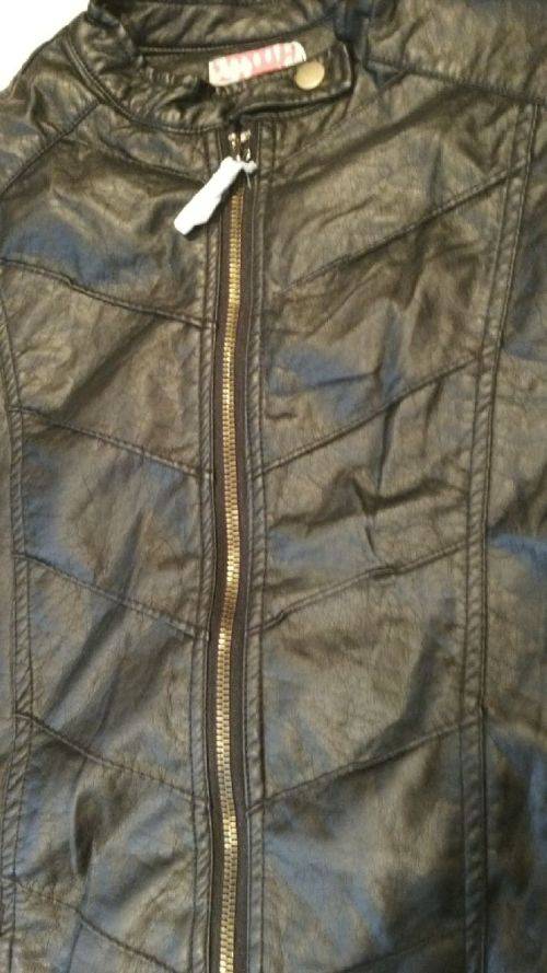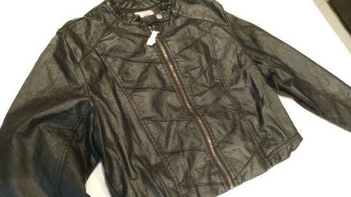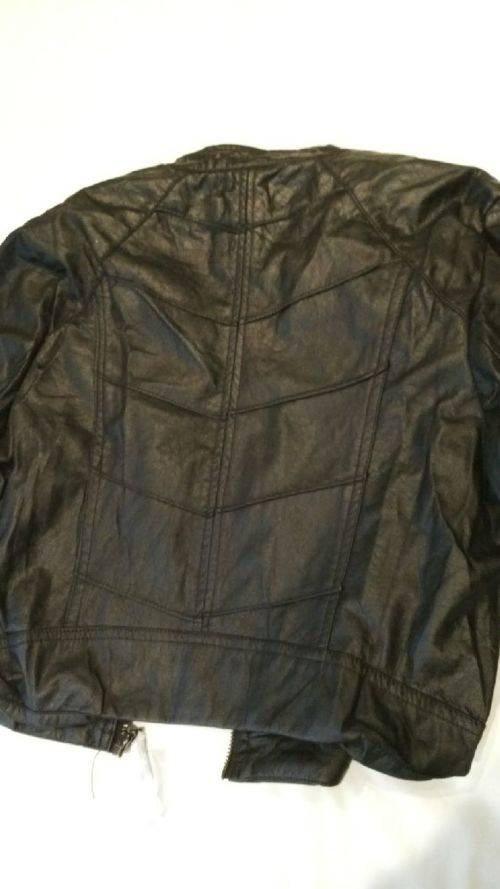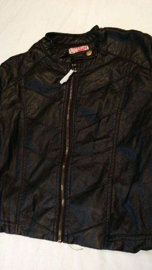 Stunning Ladies BLACK Leather Look Biker Style Crop Jacket with Funky Design, full front zip, has a great look, beautiful piece...